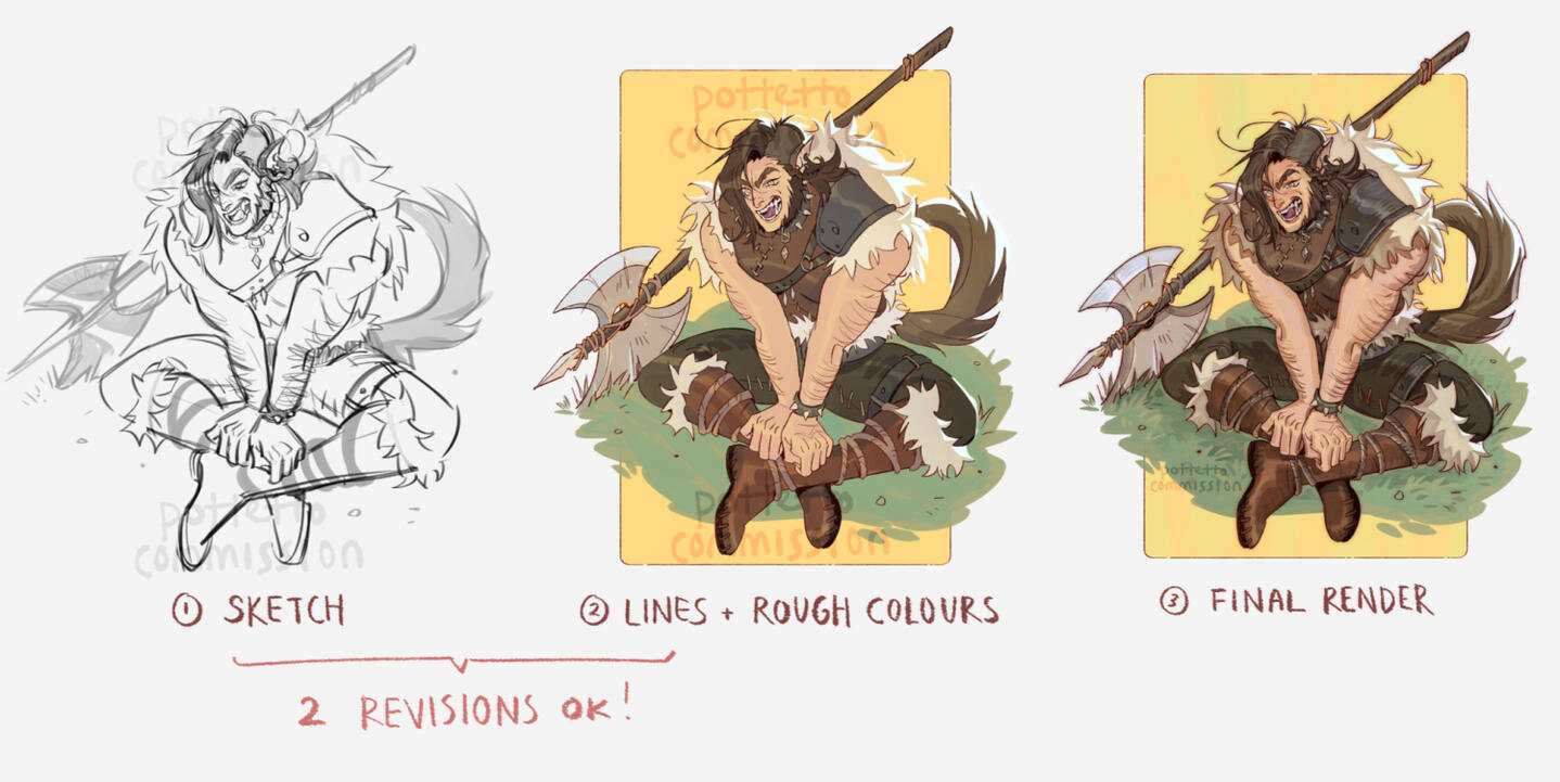● Two (2) Revisions can be made unless the Artist missed something. Any more, there will be an additional Revision Fee.
